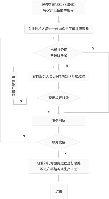 公司由專人對每次客戶服務(wù)的情況開展回訪?;卦L主要內(nèi)容包括客戶設(shè)備維修結(jié)果,客戶對服務(wù)人員工作的滿意度?;卦L人員將認(rèn)真記錄客戶反映的全部內(nèi)容,對于回訪中反映的異常情況,給予分類,向相關(guān)職能部門報告。